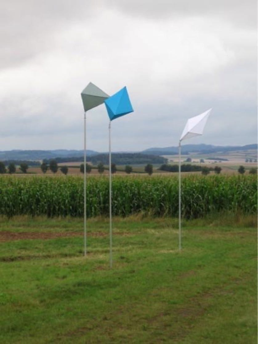in the open | textile, wood, steel cable, flagpoles | 1997 | Scheibenstraße | Münster